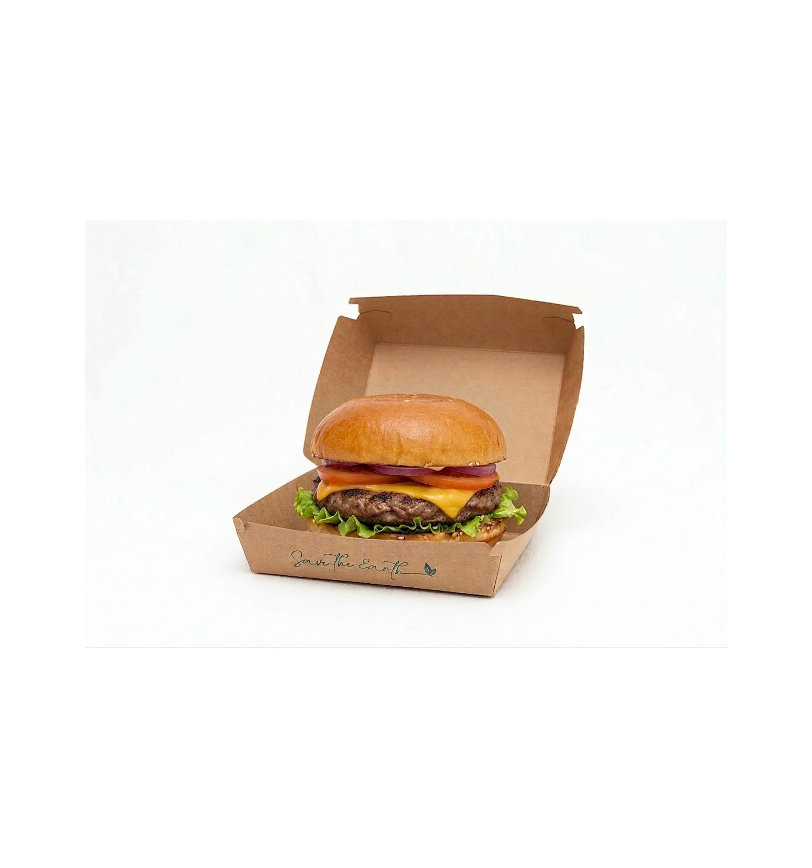 100% carton et design épuré, cette boîte burger convient parfaitement pour cheese burger, Hamburger.