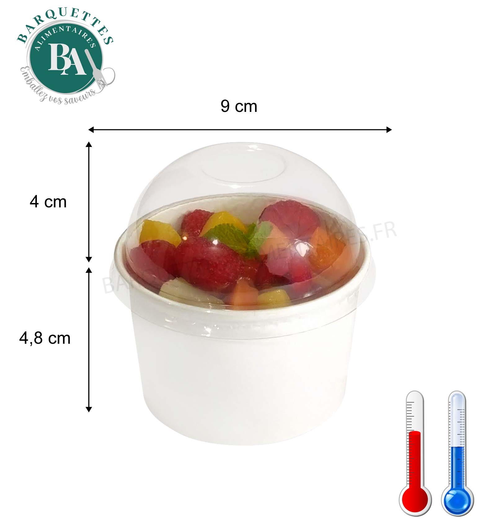 Idéals pour glaces, desserts, fruits coupés ou petites entrées.
