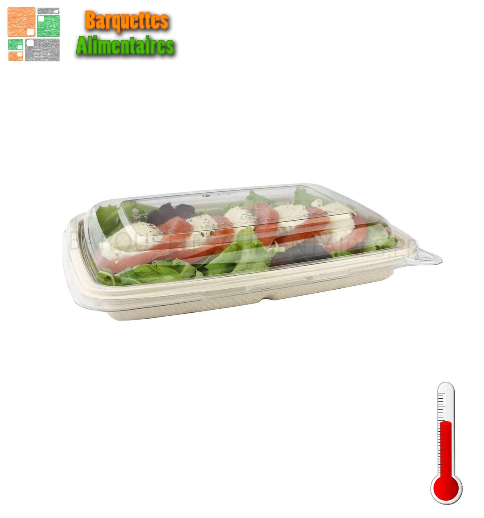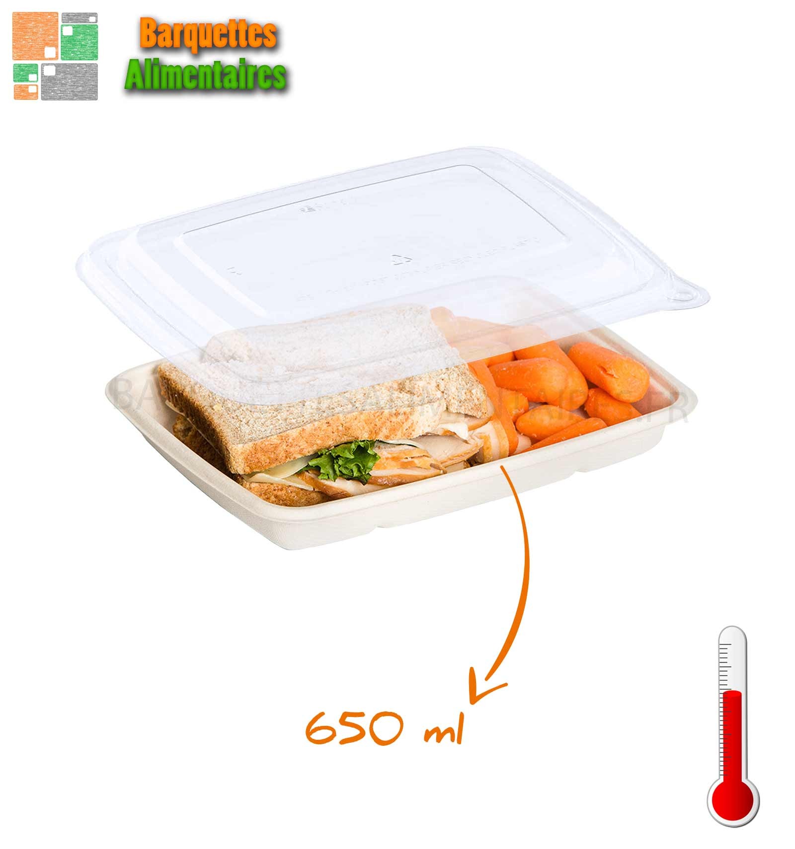 75 Barquettes écologiques 650 ml en fibres canne à sucre AVEC COUVERCLE
