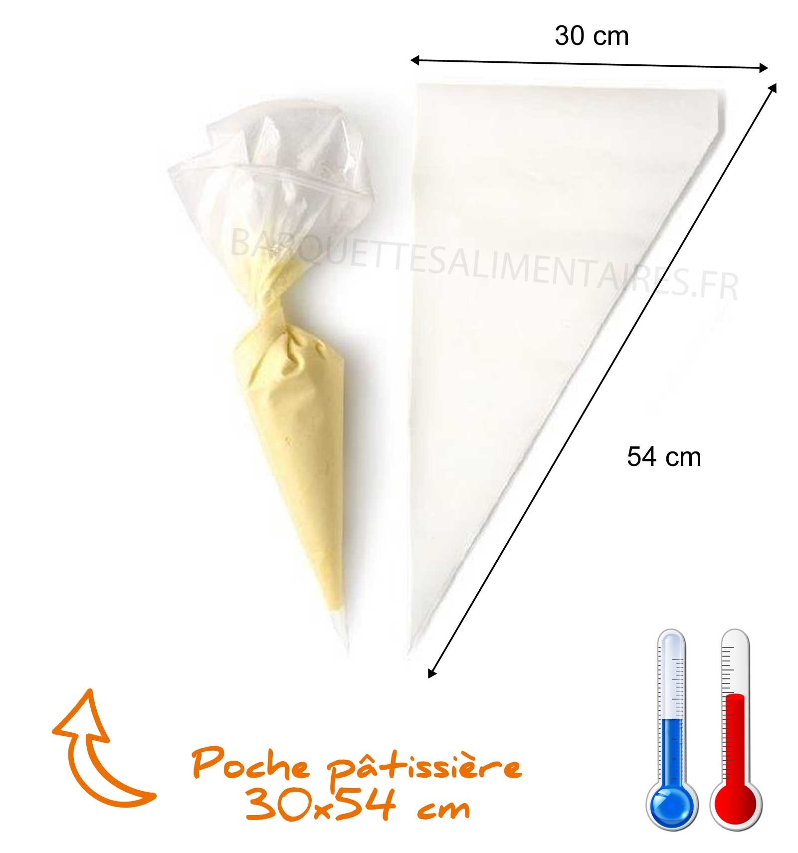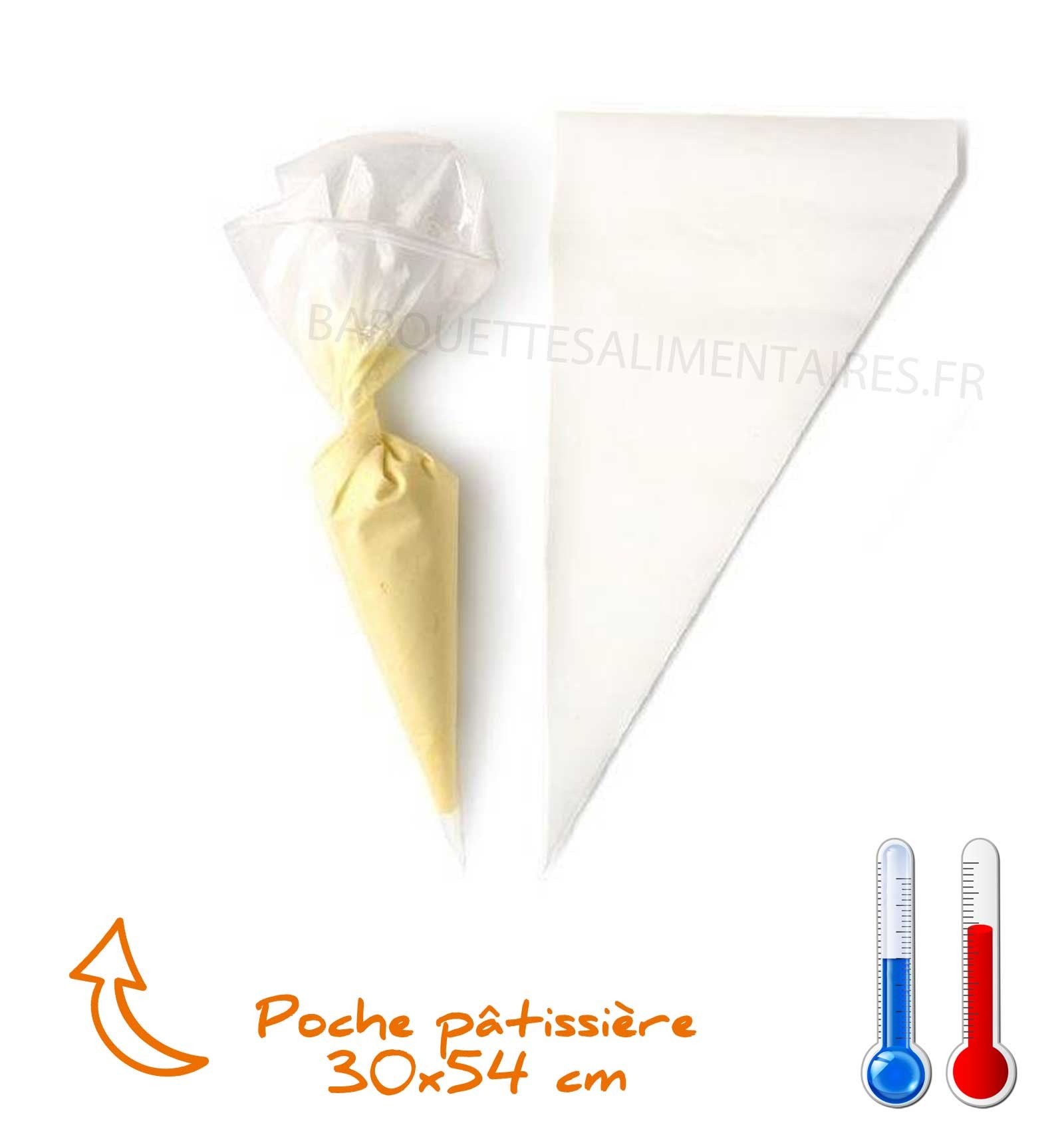 Découvrez nos poches à douille pâtissières en plastique jetable 30 x 54 cm, spécialement conçues pour un usage professionnel. Vendues par lot de 100, elles offrent une excellente résistance et une prise en main confortable pour un travail précis et efficace.