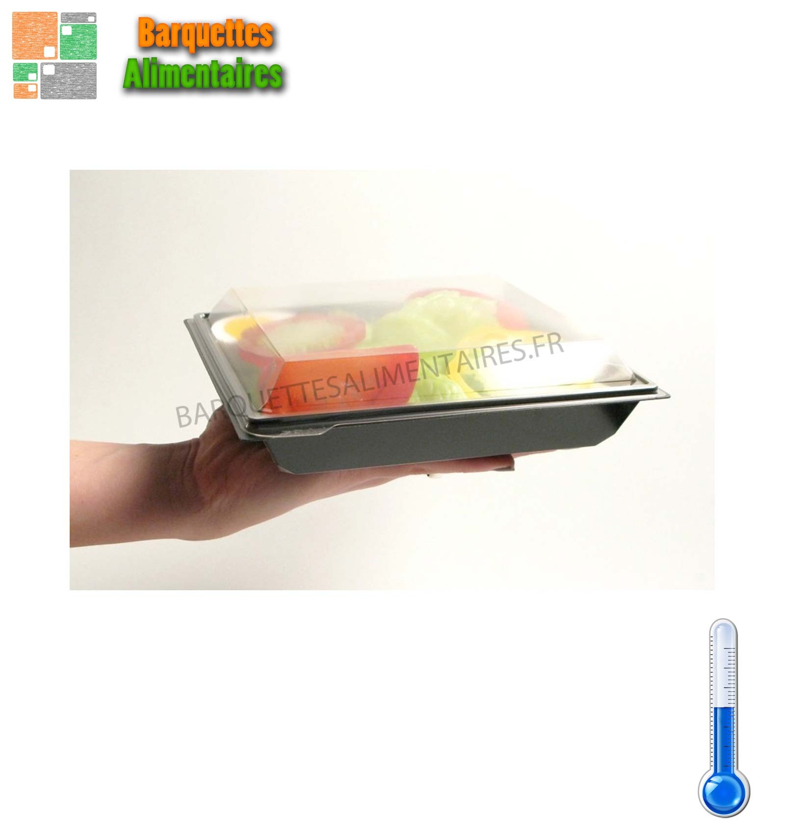 La barquette TAKIPACK est disponible deux couleurs, noir ou transparent, le couvercle cristal est vendu avec.