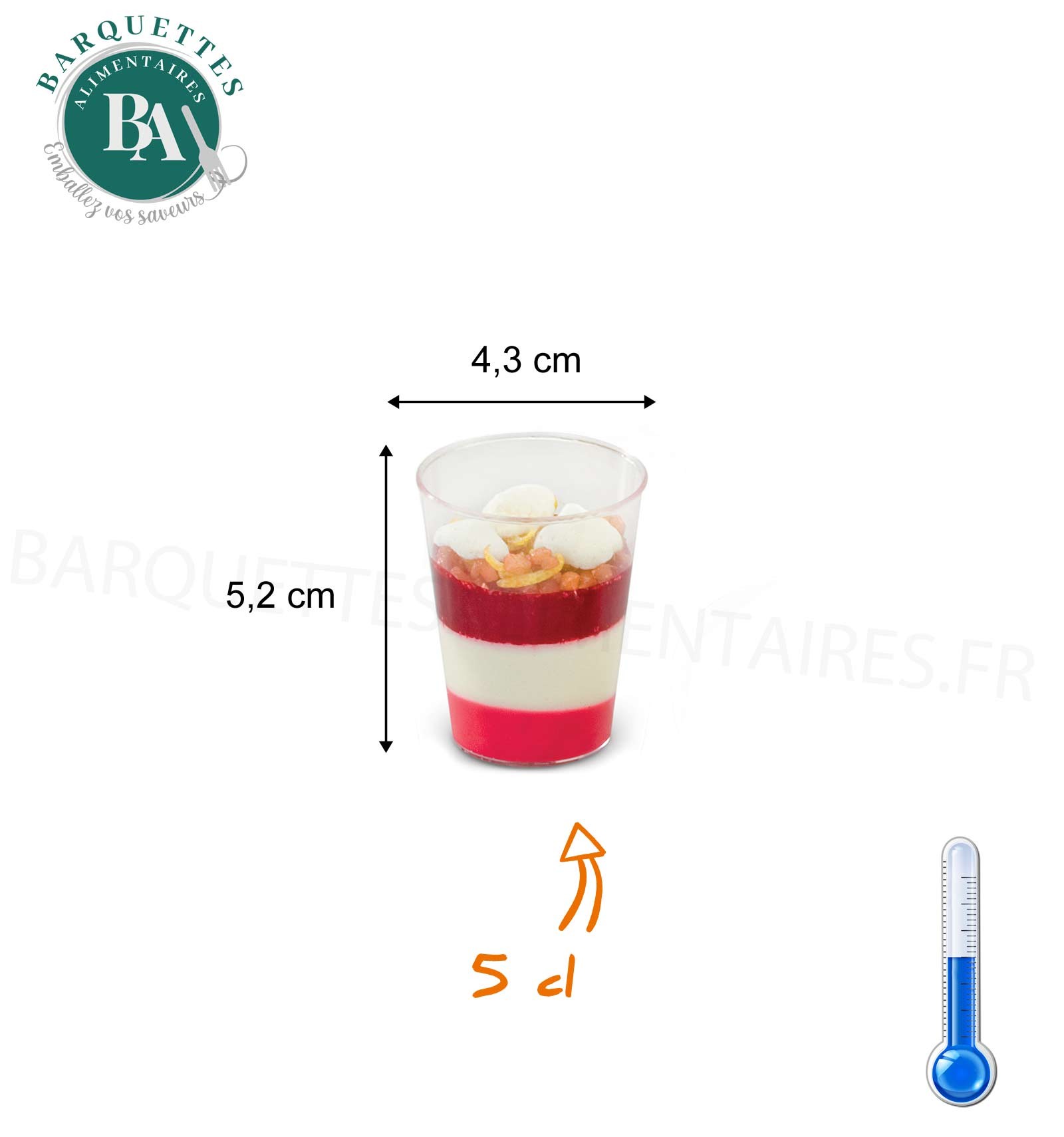 Avec un diamètre de 4,3 cm et une hauteur de 5,2 cm, elles trouvent leur place dans tous les contextes de service : cocktails dînatoires, buffets froids, événements professionnels, mariages, banquets ou ateliers culinaires.